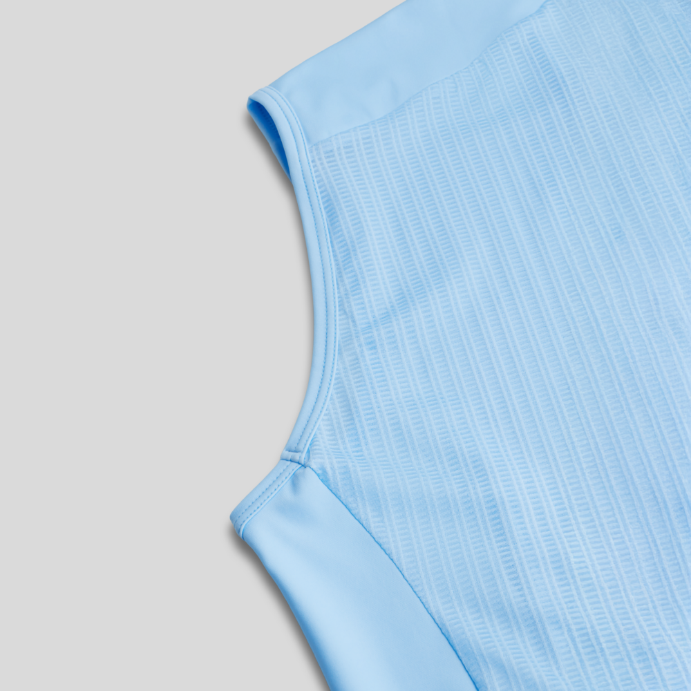 Vederlichte mesh stof voor-en achteraan voor maximaal ademend vermogen. Anti-bacteriële en vochtafvoerende behandelingen zijn toegepast op deze stof om het fris te houden, zelfs tijdens lange ritten.